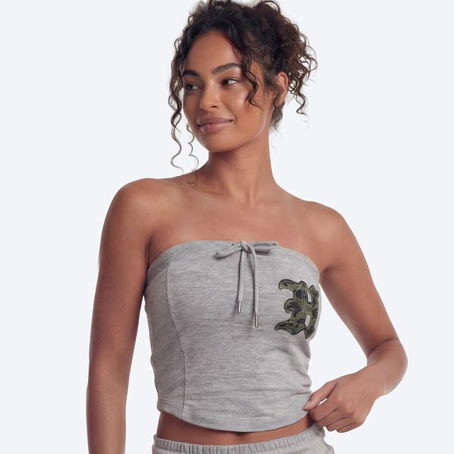 【新品早鳥優惠】Camo Applique Tube 抽繩平口上衣 混灰色