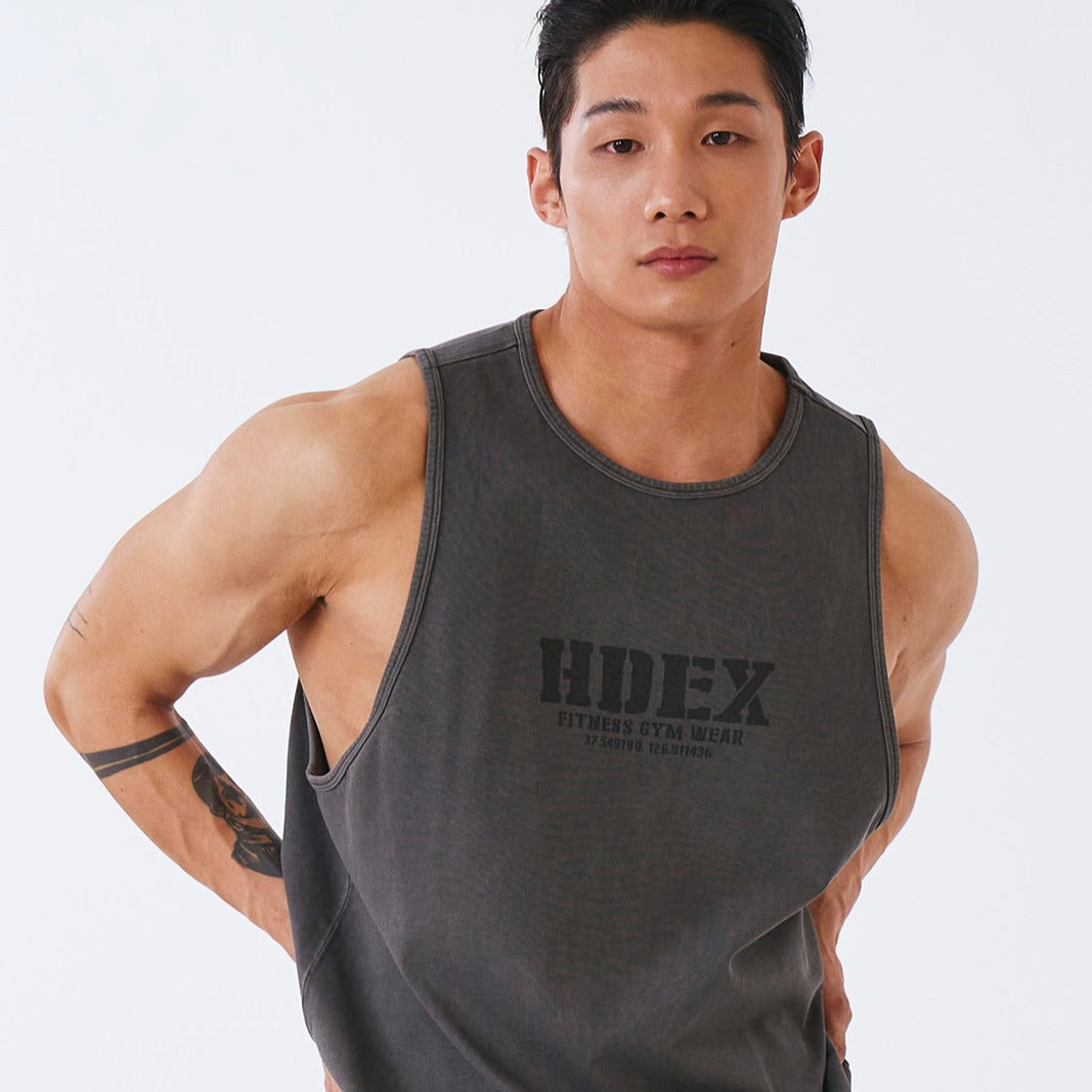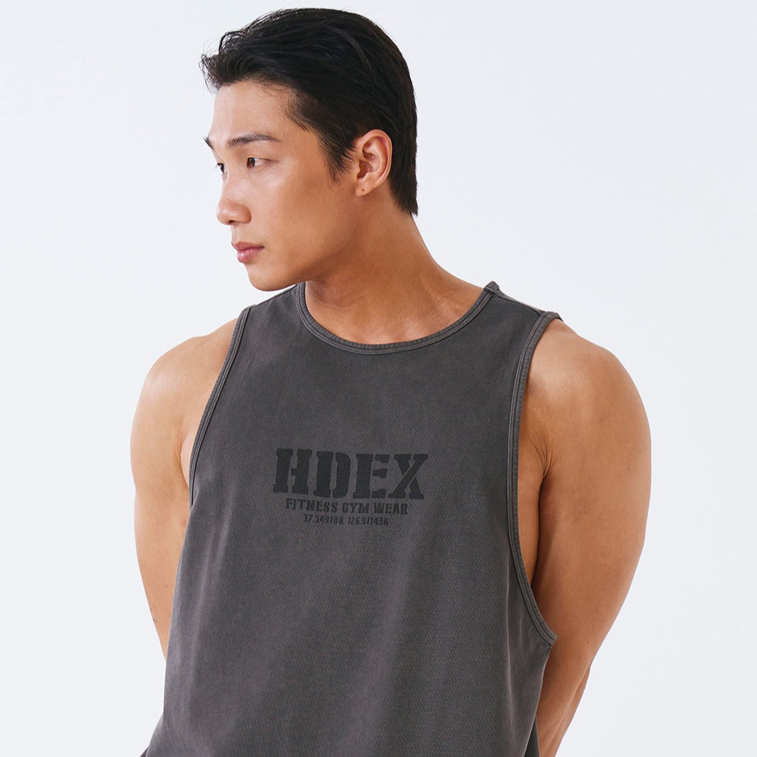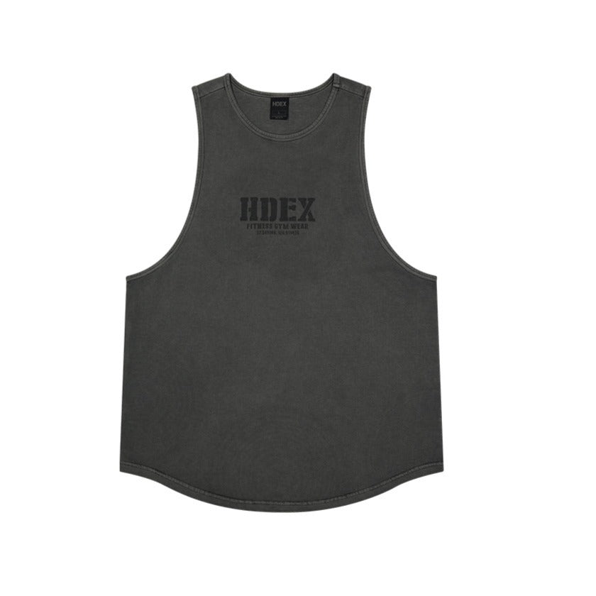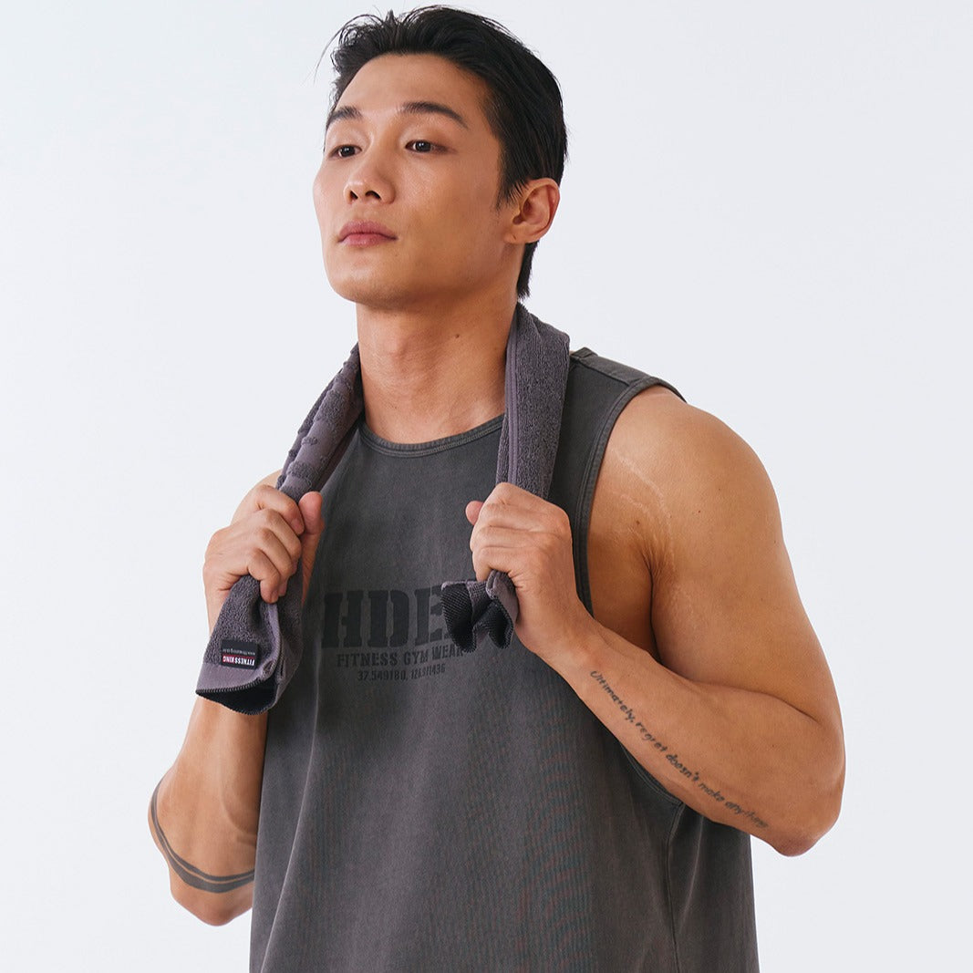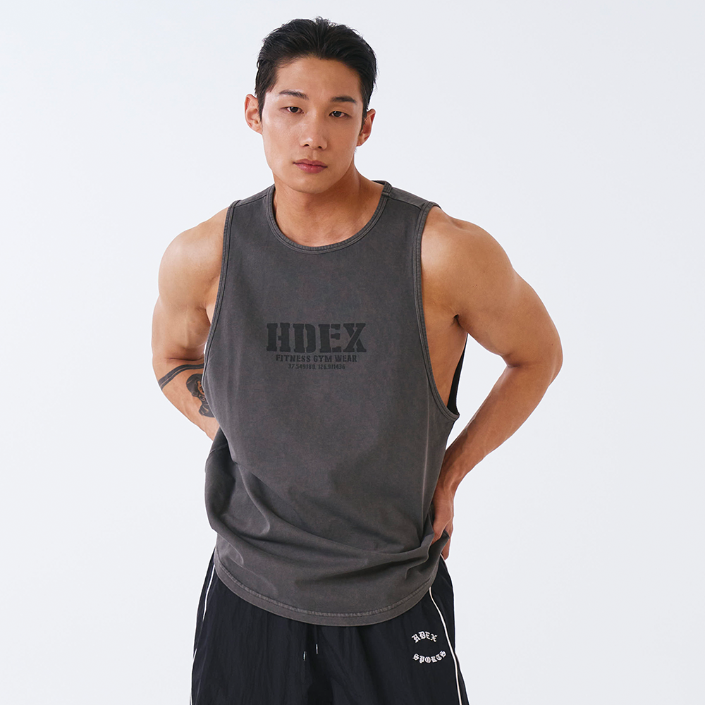 Core Pigment 復古美式風純棉運動背心 水洗鐵灰