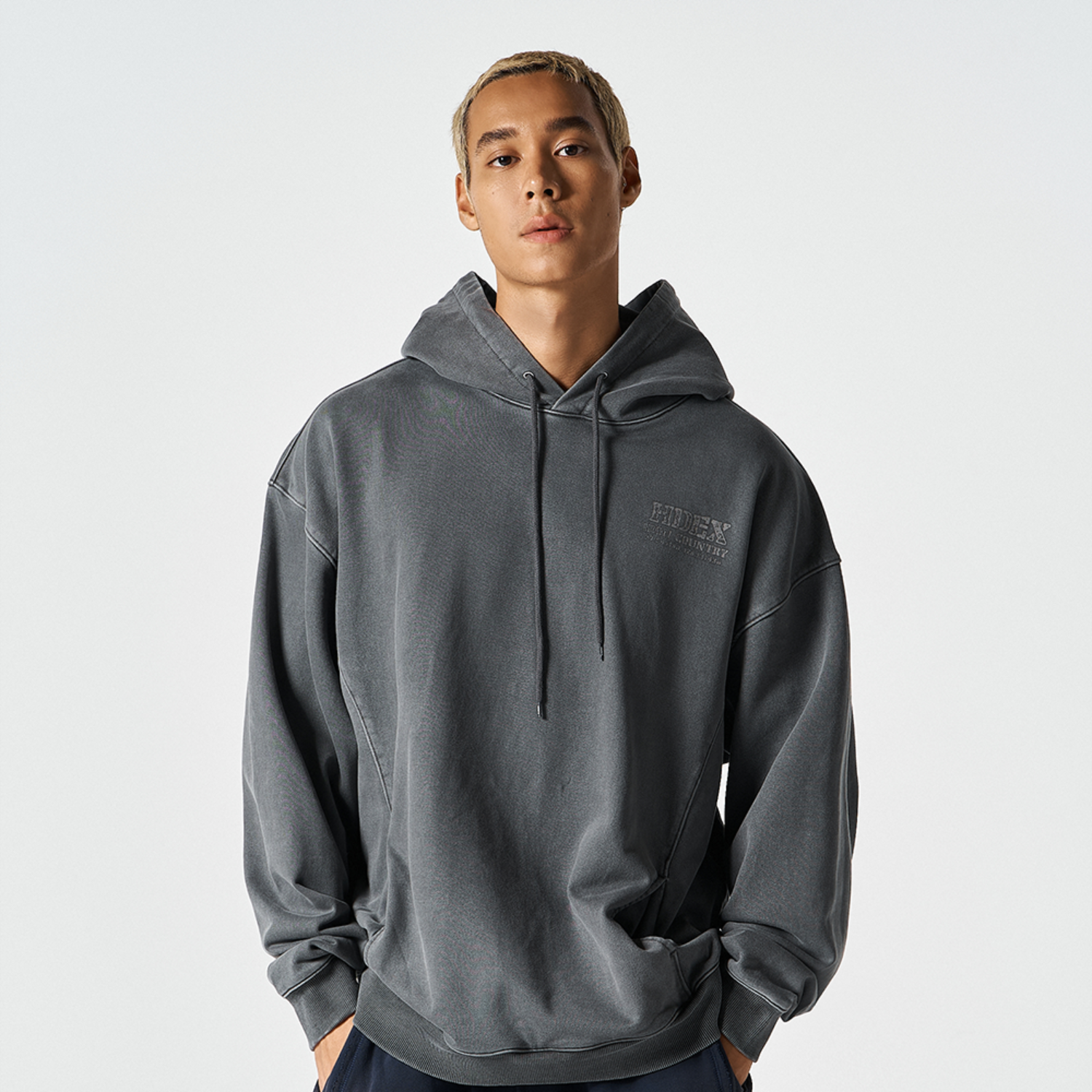 Core Small Logo 水洗復古連帽上衣 深灰色