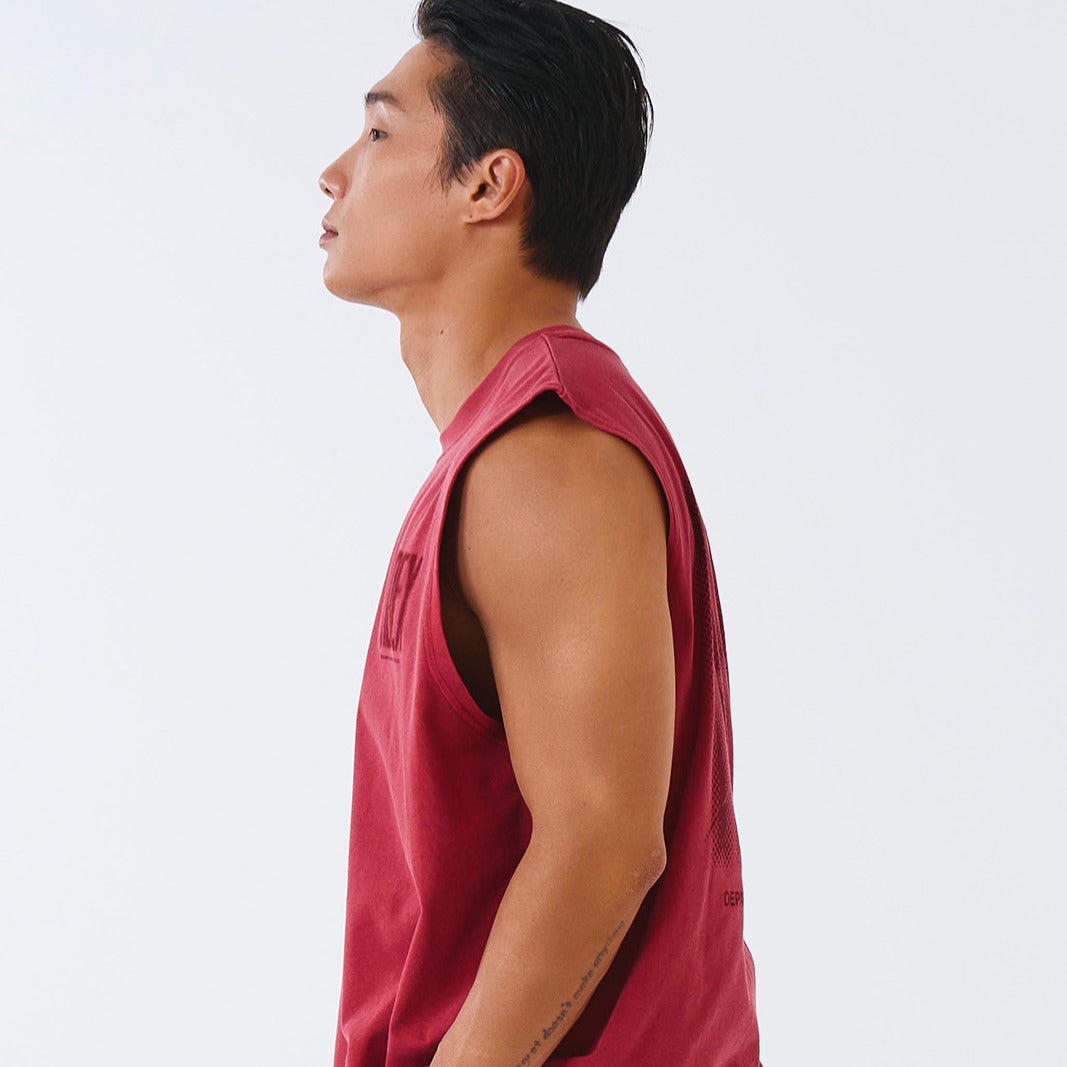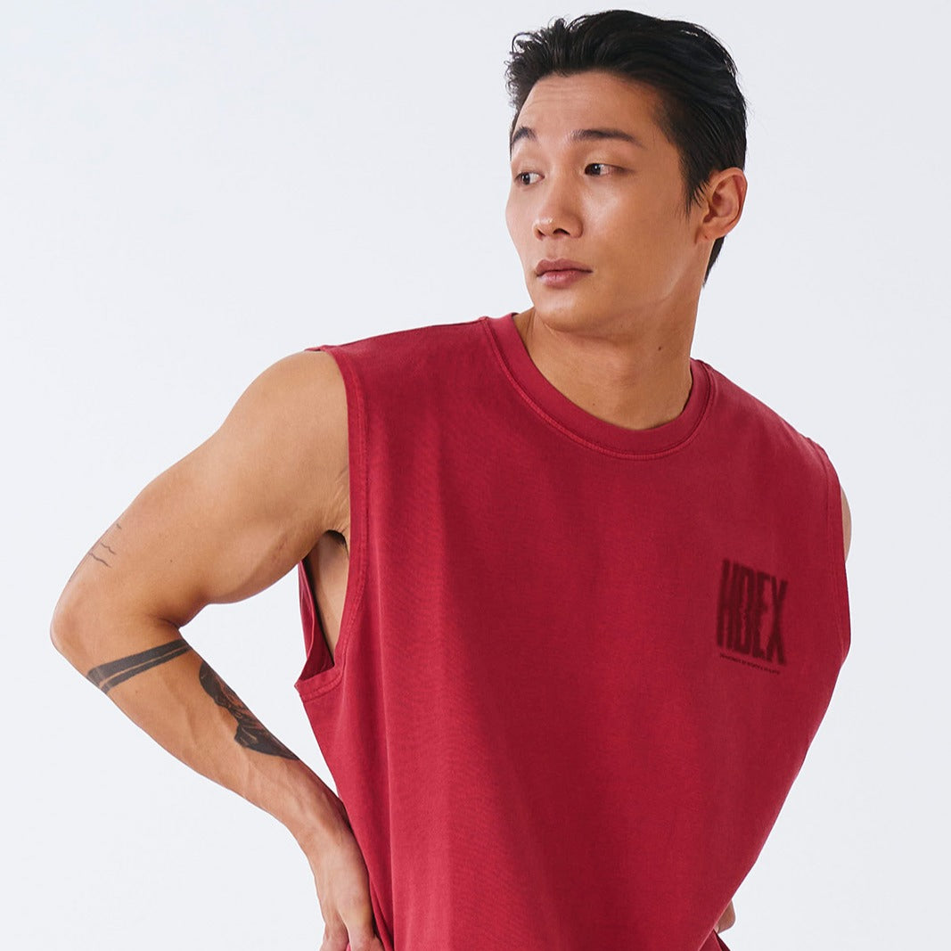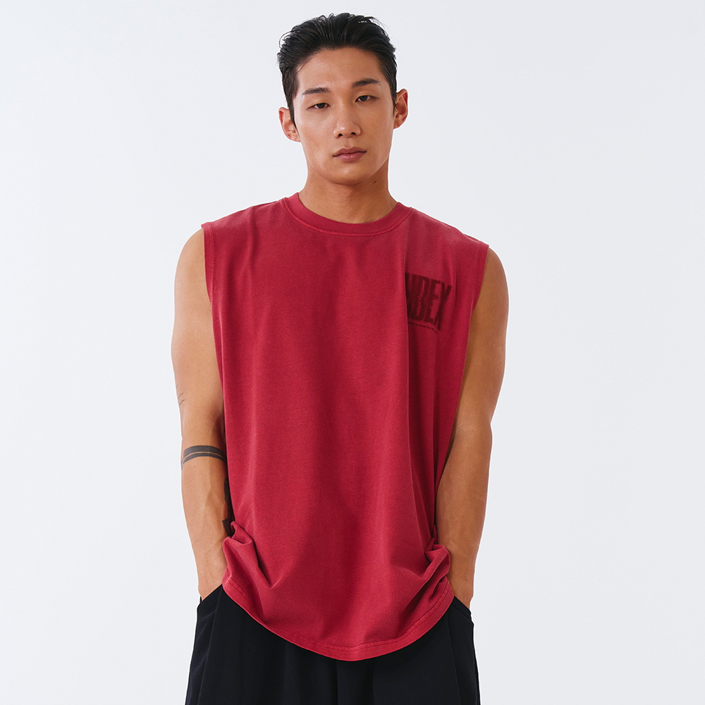 Crack Printed 復古美式風純棉背心 水洗暗紅