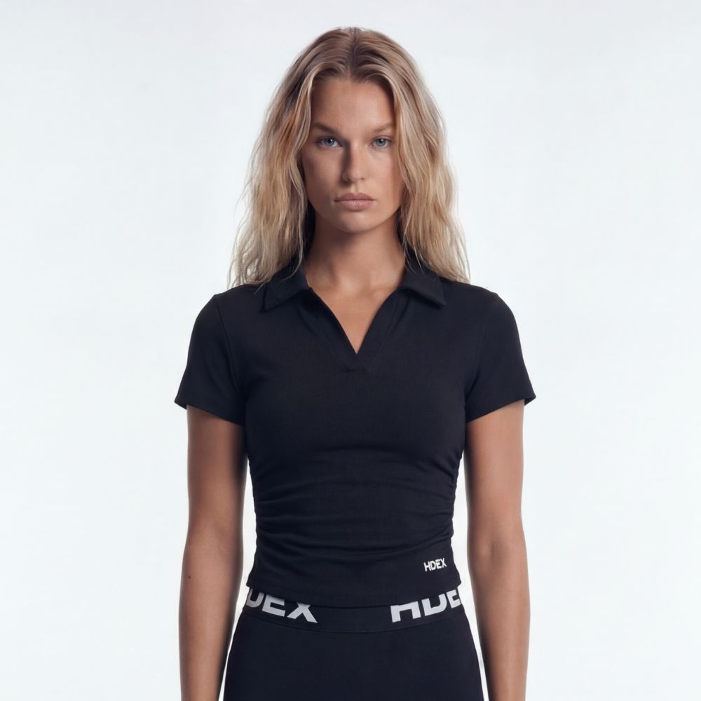 EZ Sculpt Pique V領短版運動短袖上衣 黑色