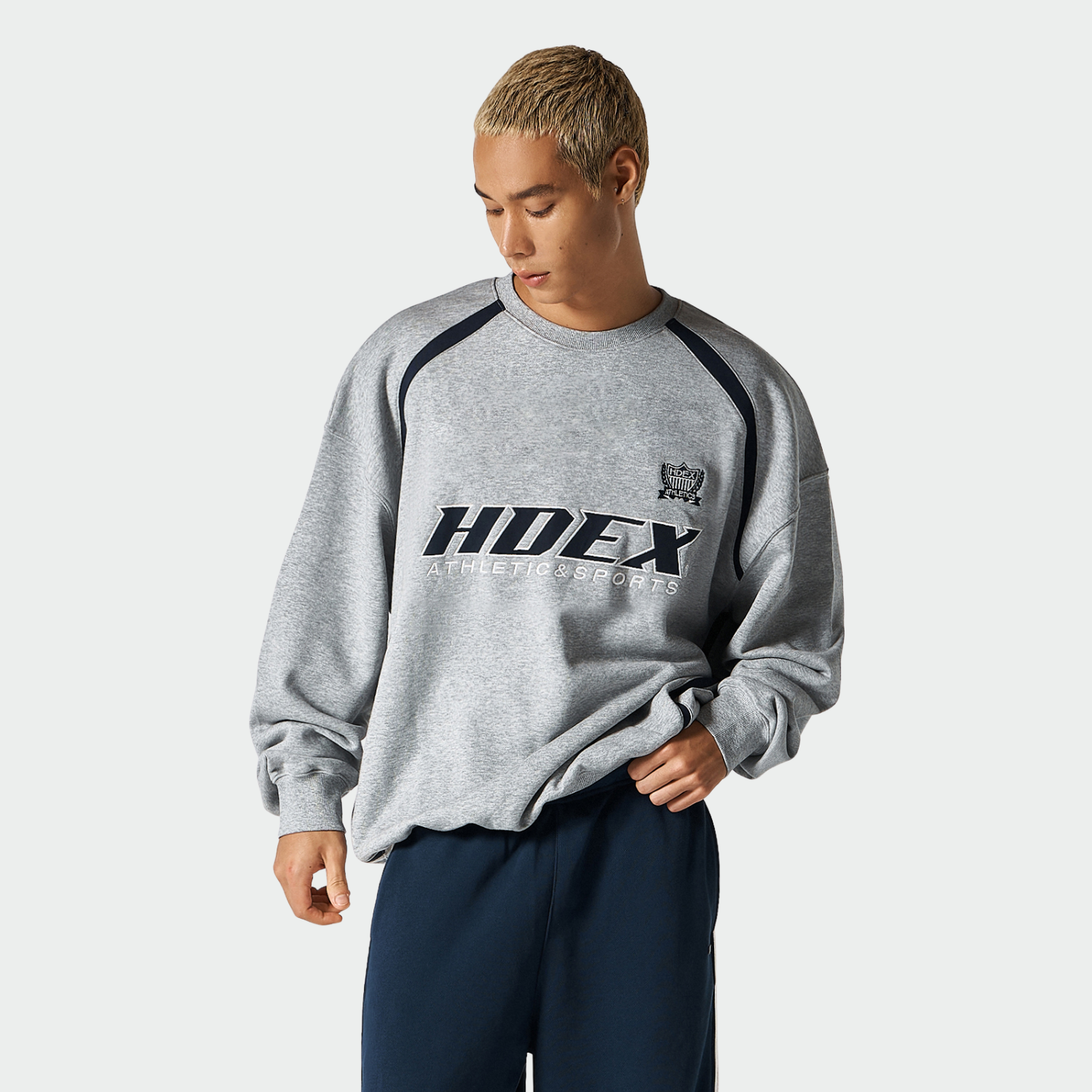【早鳥優惠】Origin Color Block 滾邊撞色長袖上衣 麻花灰