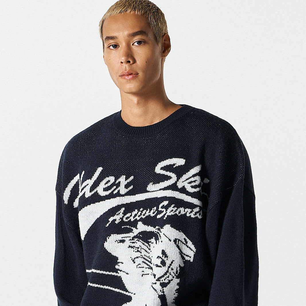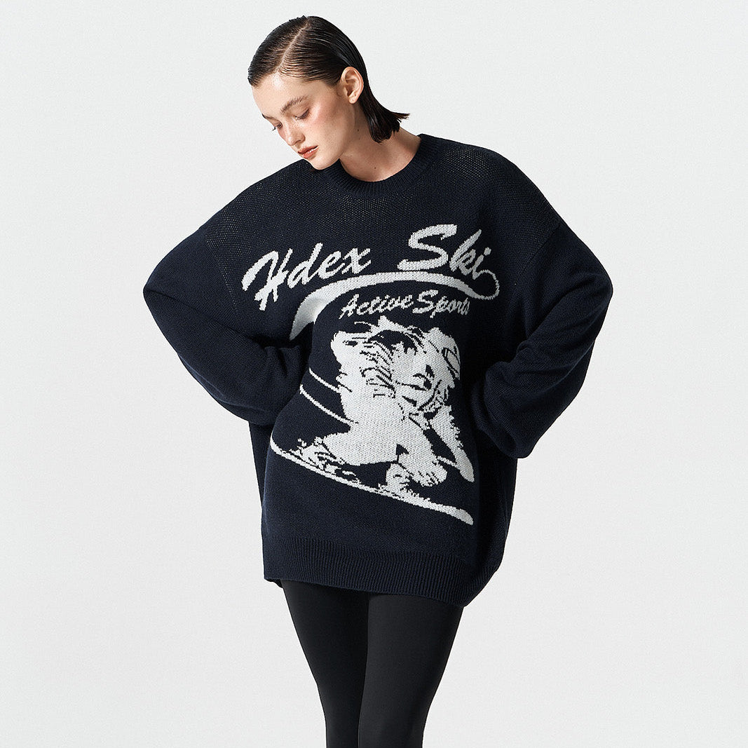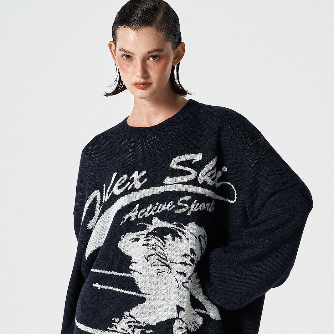 【早鳥優惠】Over Fit Ski 混羊毛針織毛衣 深藍色(男女同款)