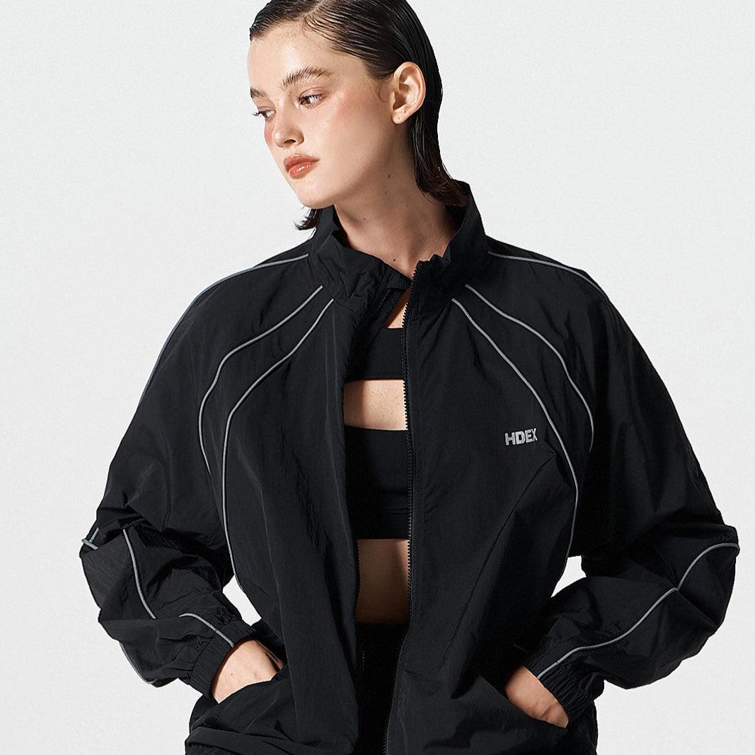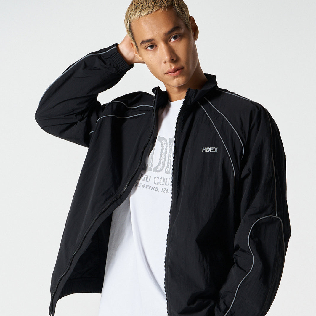 PIPING 滾邊尼龍防風外套 黑色(男女同款)