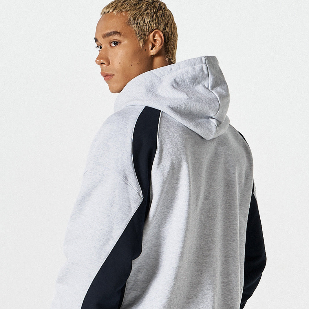 【早鳥優惠】Side Color 滾邊撞色運動連帽上衣 麻灰白