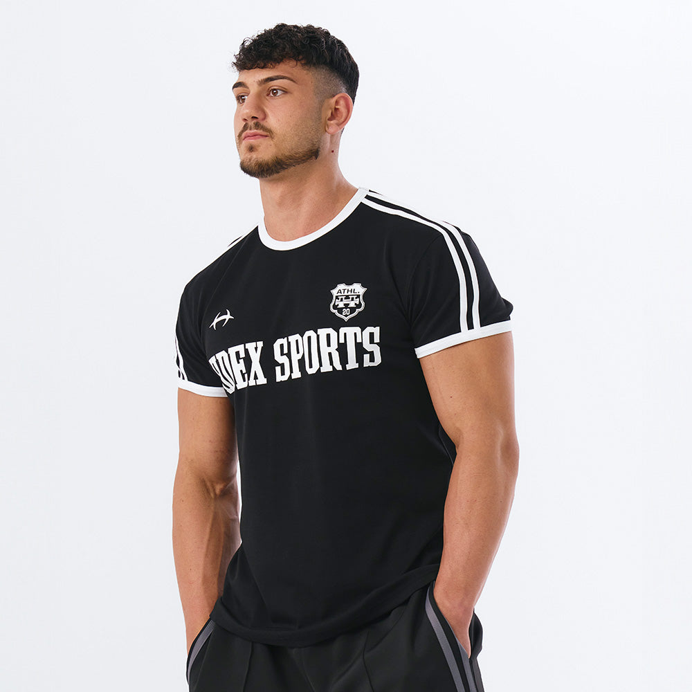 Sporty Ringer Muscle Fit 滾邊短袖運動上衣 黑色