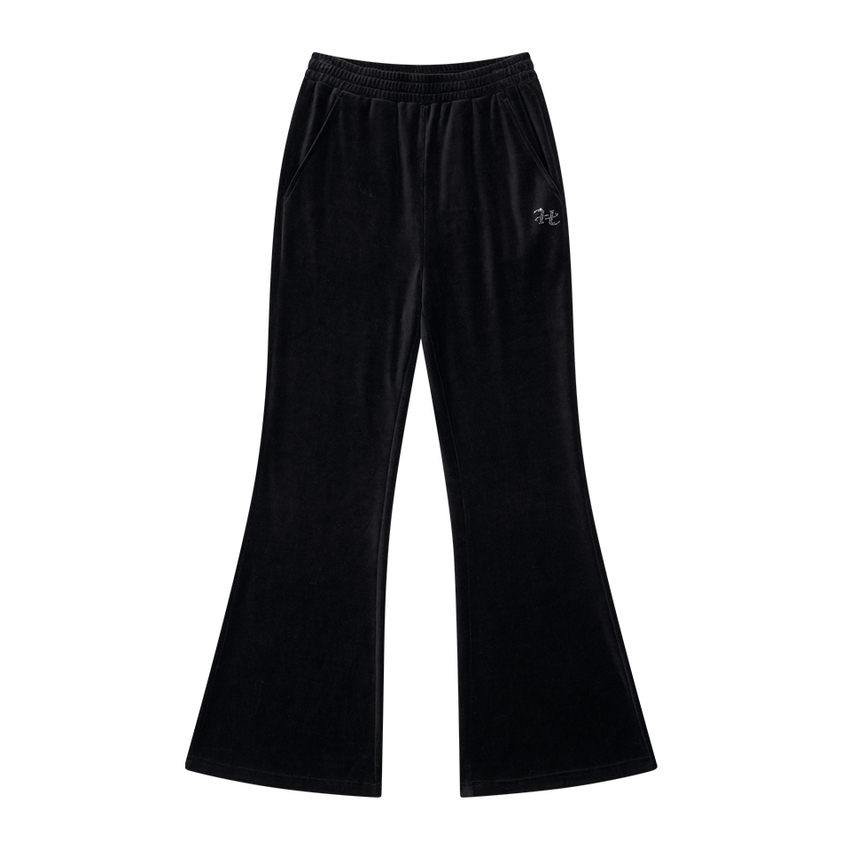 【早鳥優惠】Velour 美式街頭風貼鑽修身喇叭褲 黑色