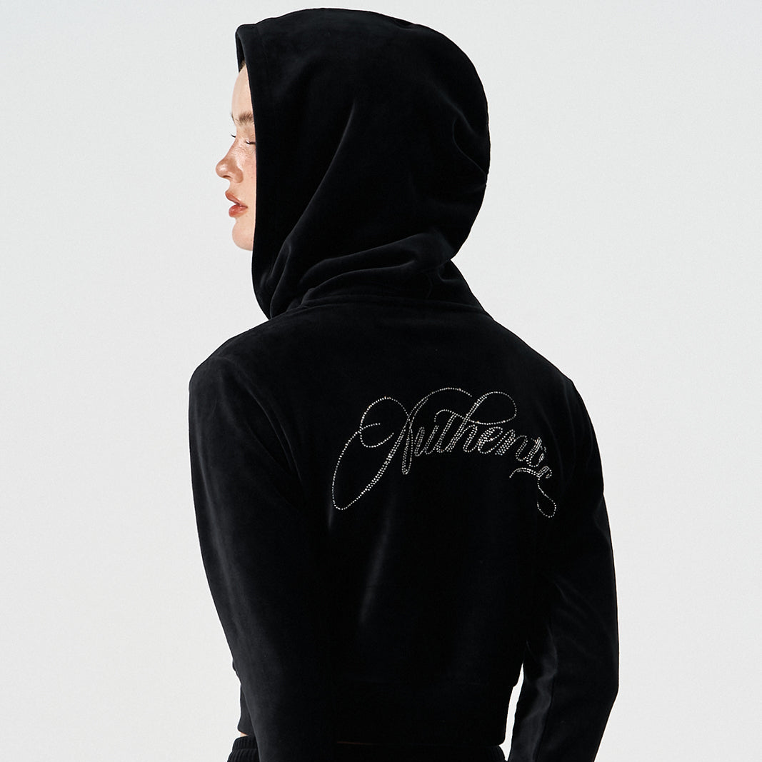 【早鳥優惠】Velour 美式街頭風貼鑽短版連帽外套 黑色