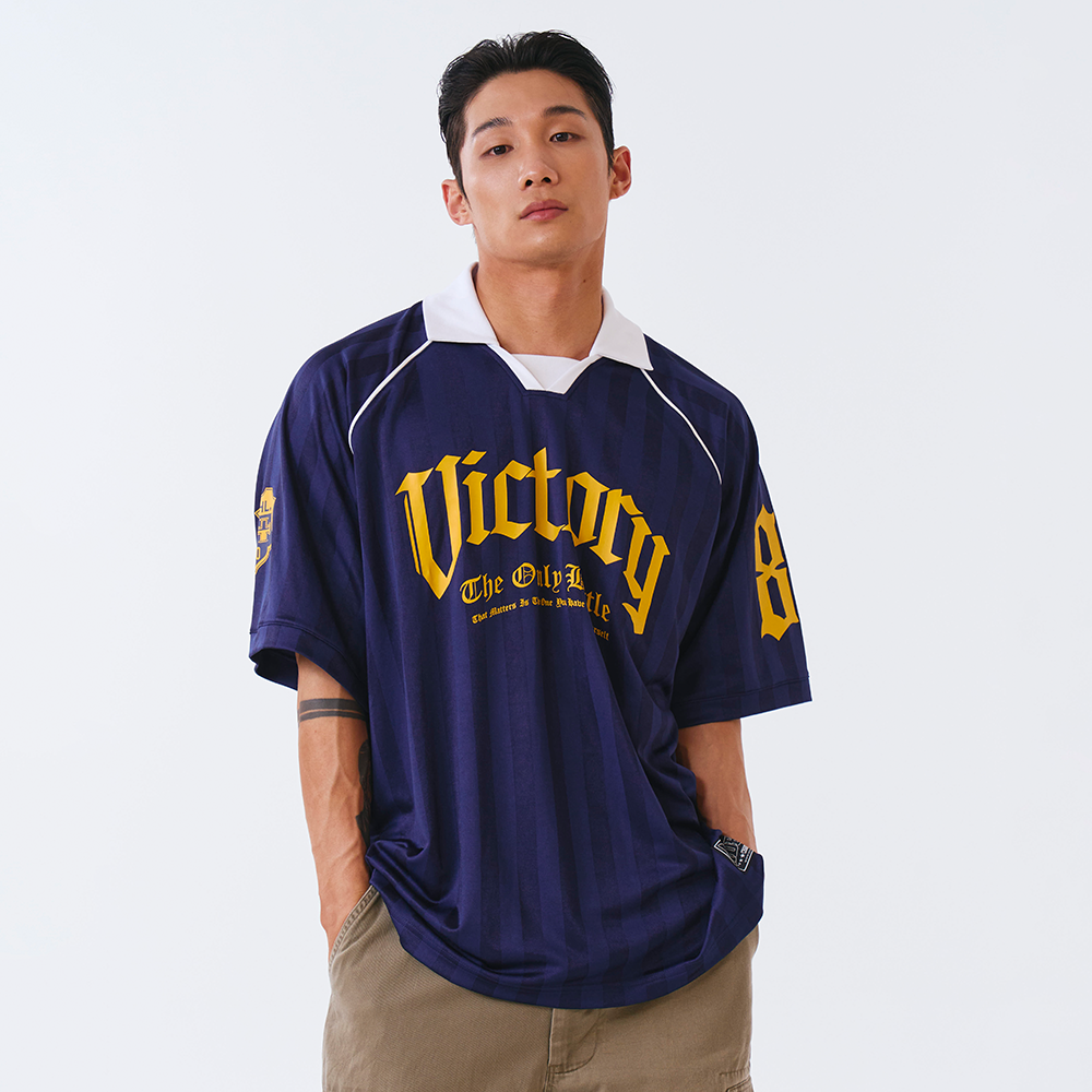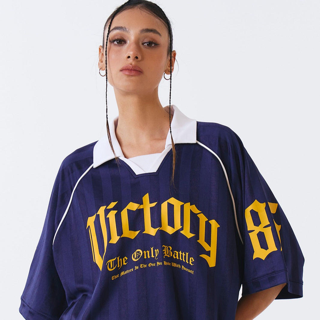 Victory Striped 美式足球風短袖上衣 深藍色(男女同款)
