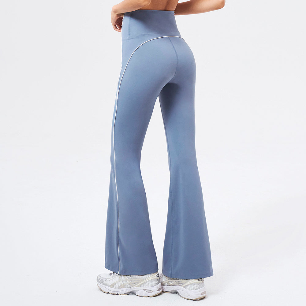 SUPPORT PIPING 喇叭修身運動褲 淺藍色