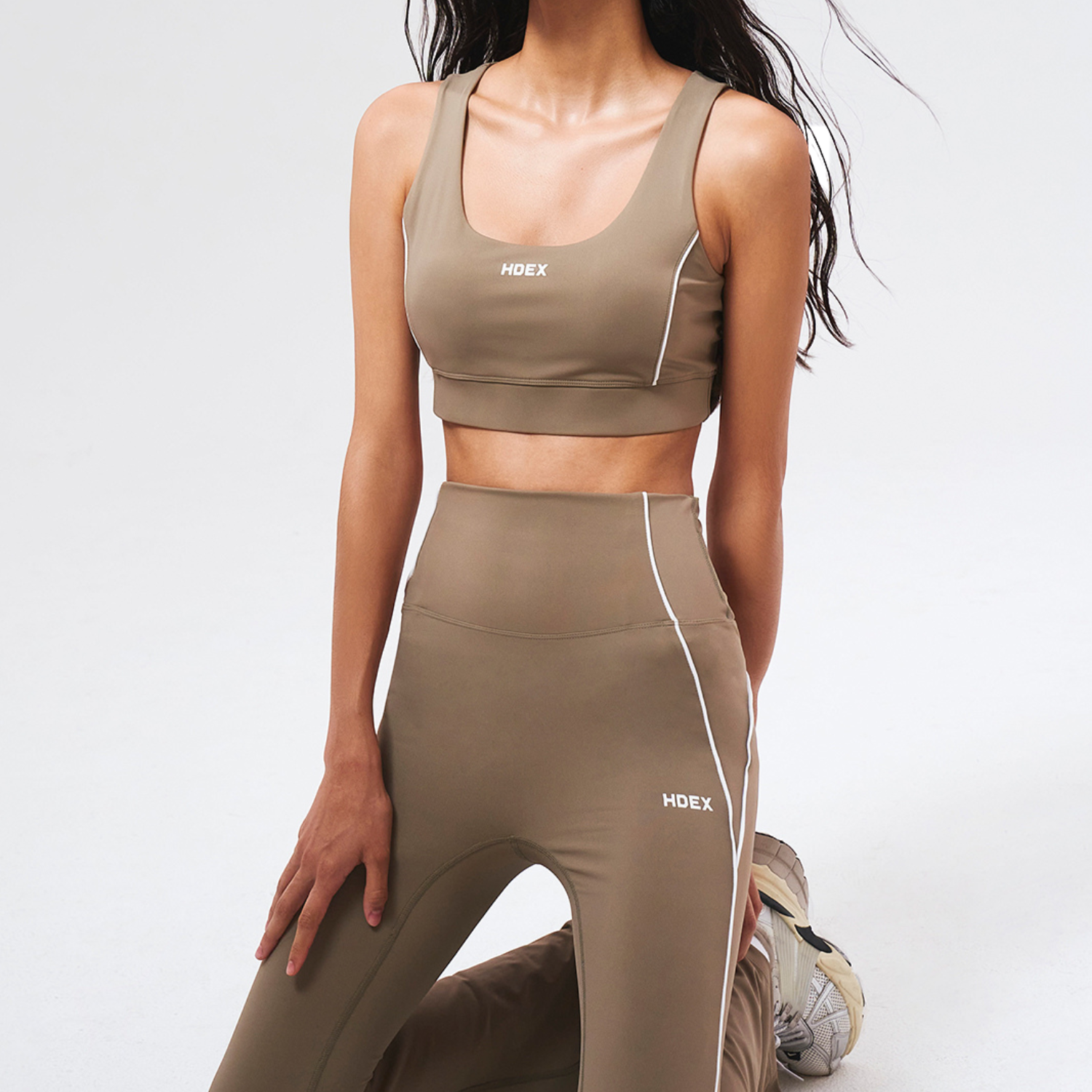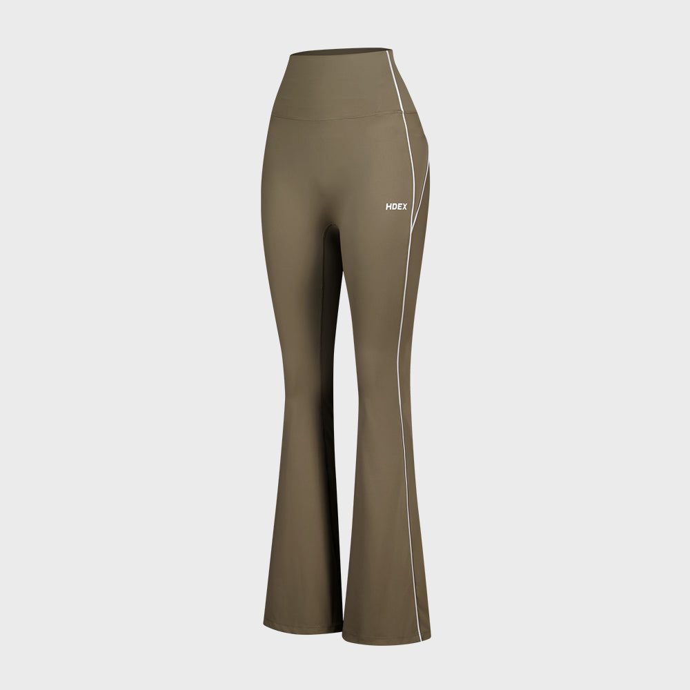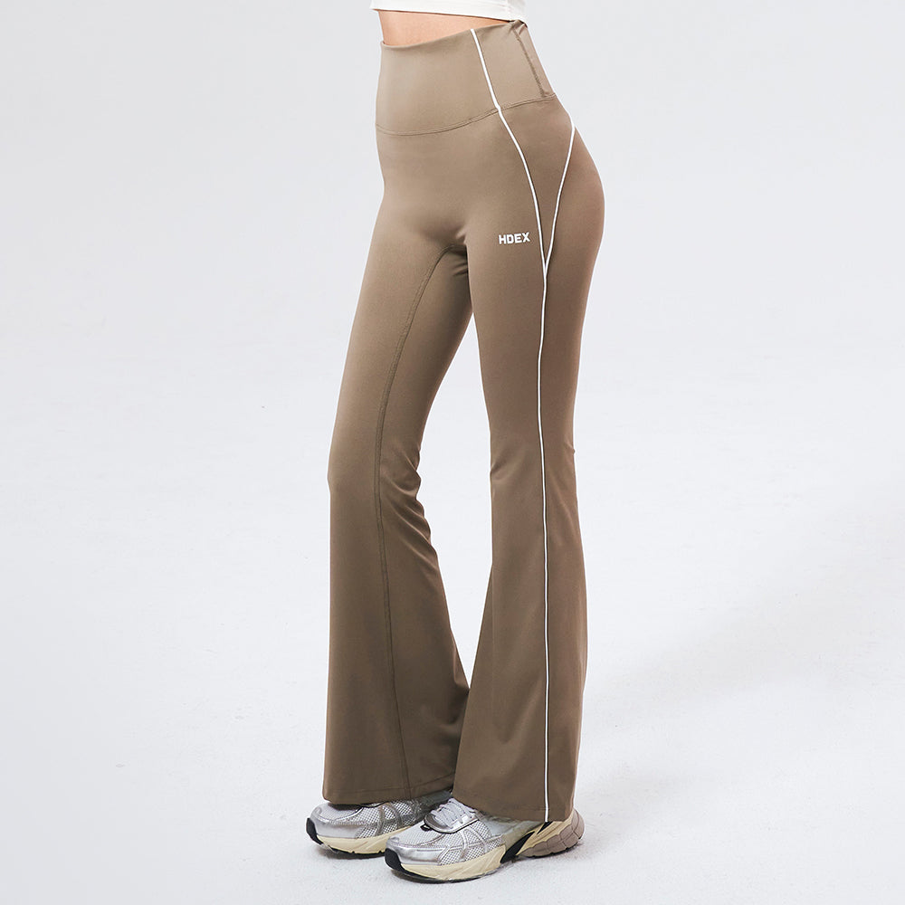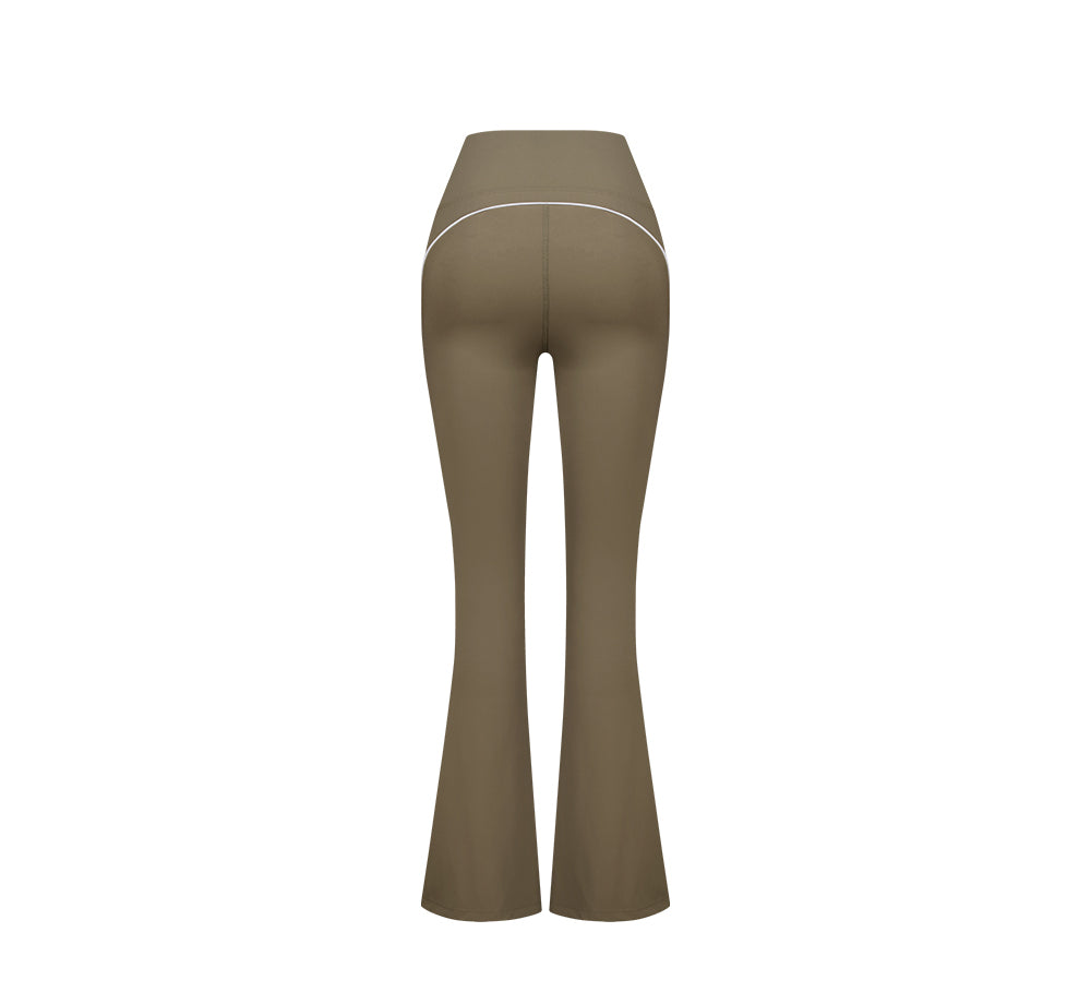 SUPPORT PIPING 喇叭修身運動褲 奶茶色