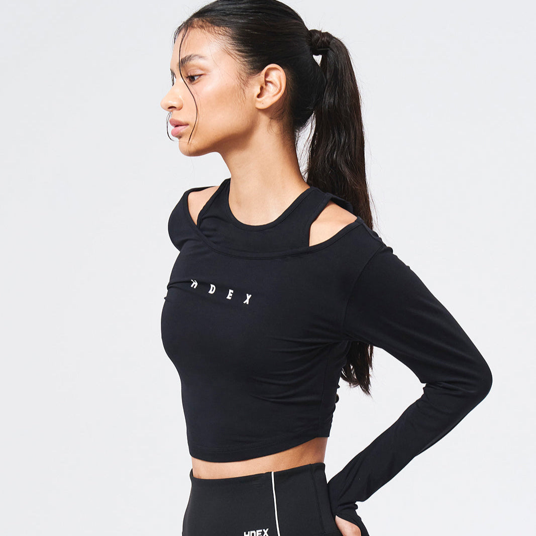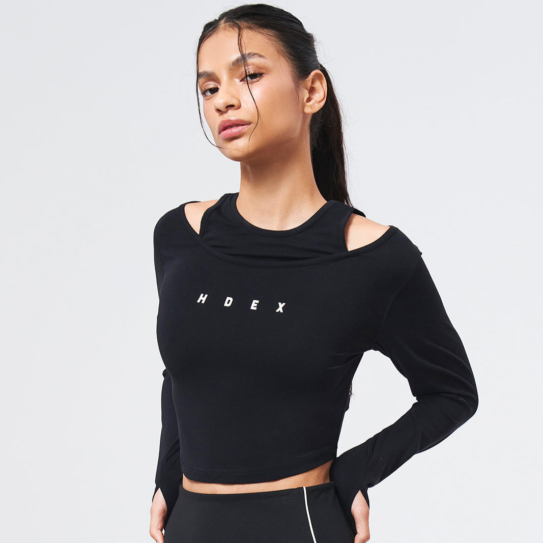Womens Brisen Layered 假兩件式長袖上衣 黑色