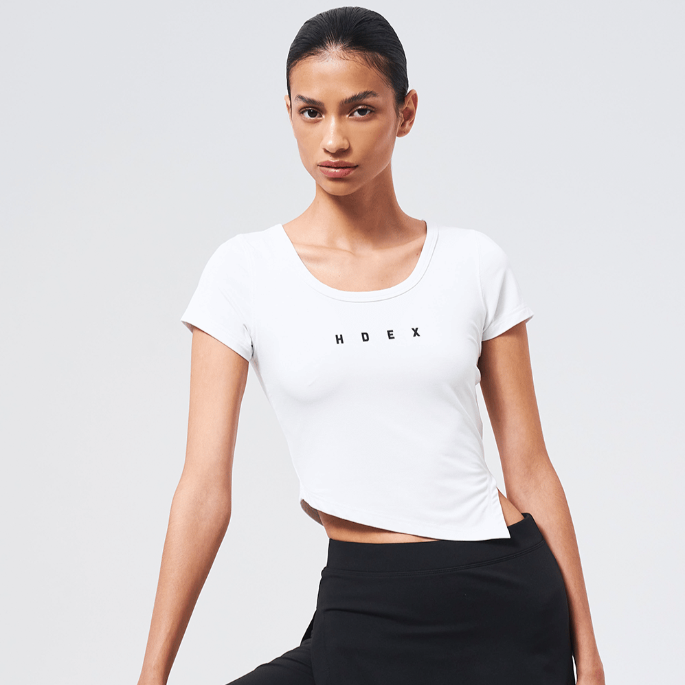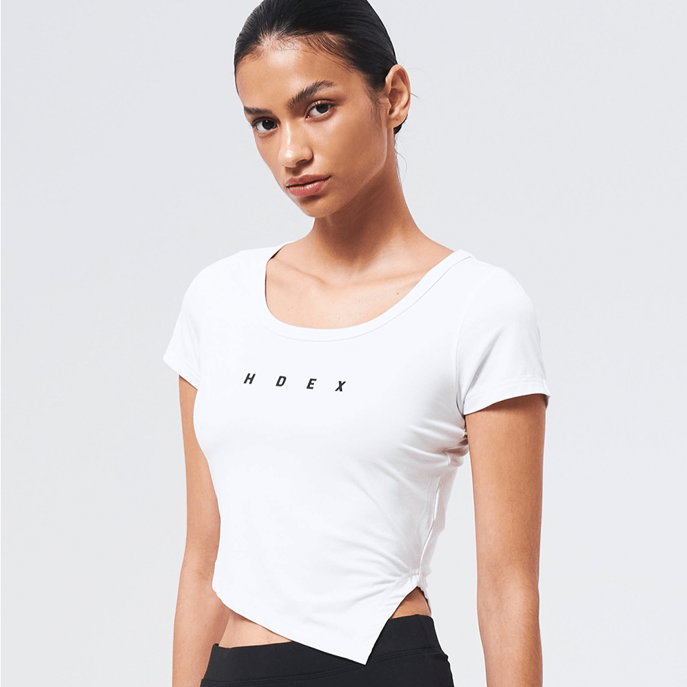Womens Brisen V-Cut 不對稱剪裁修身短袖 白色