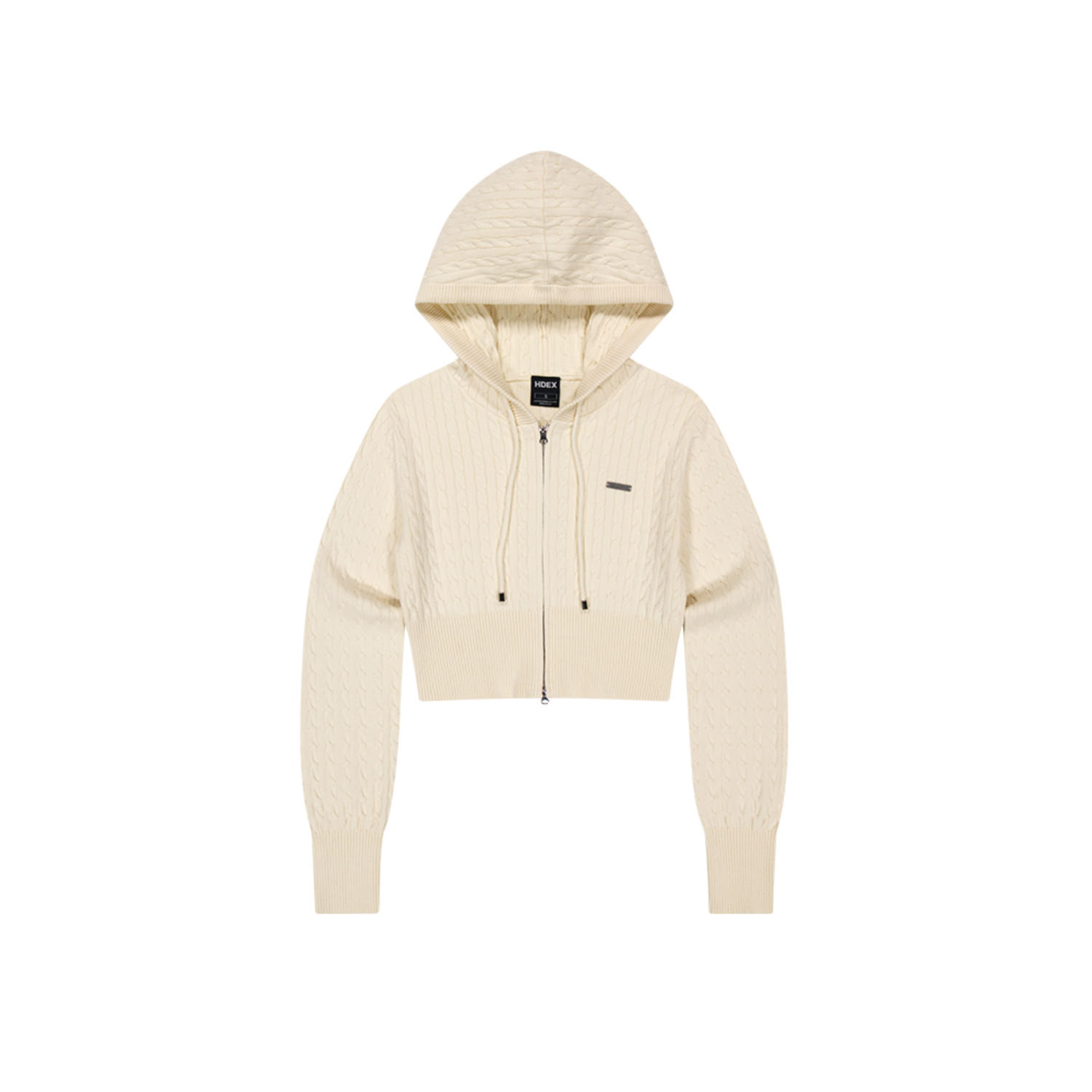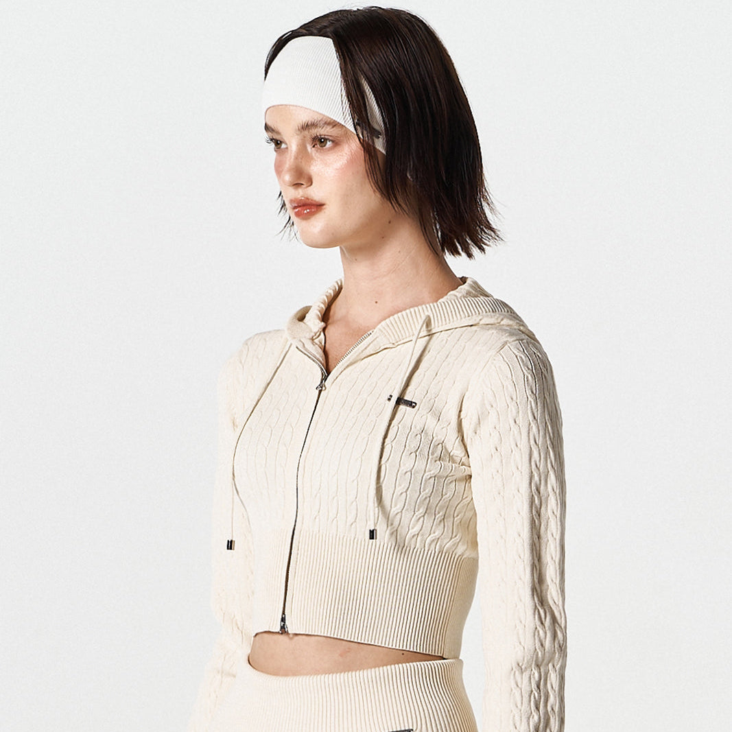 【早鳥優惠】Womens Cable 麻花針織短版連帽外套 象牙白