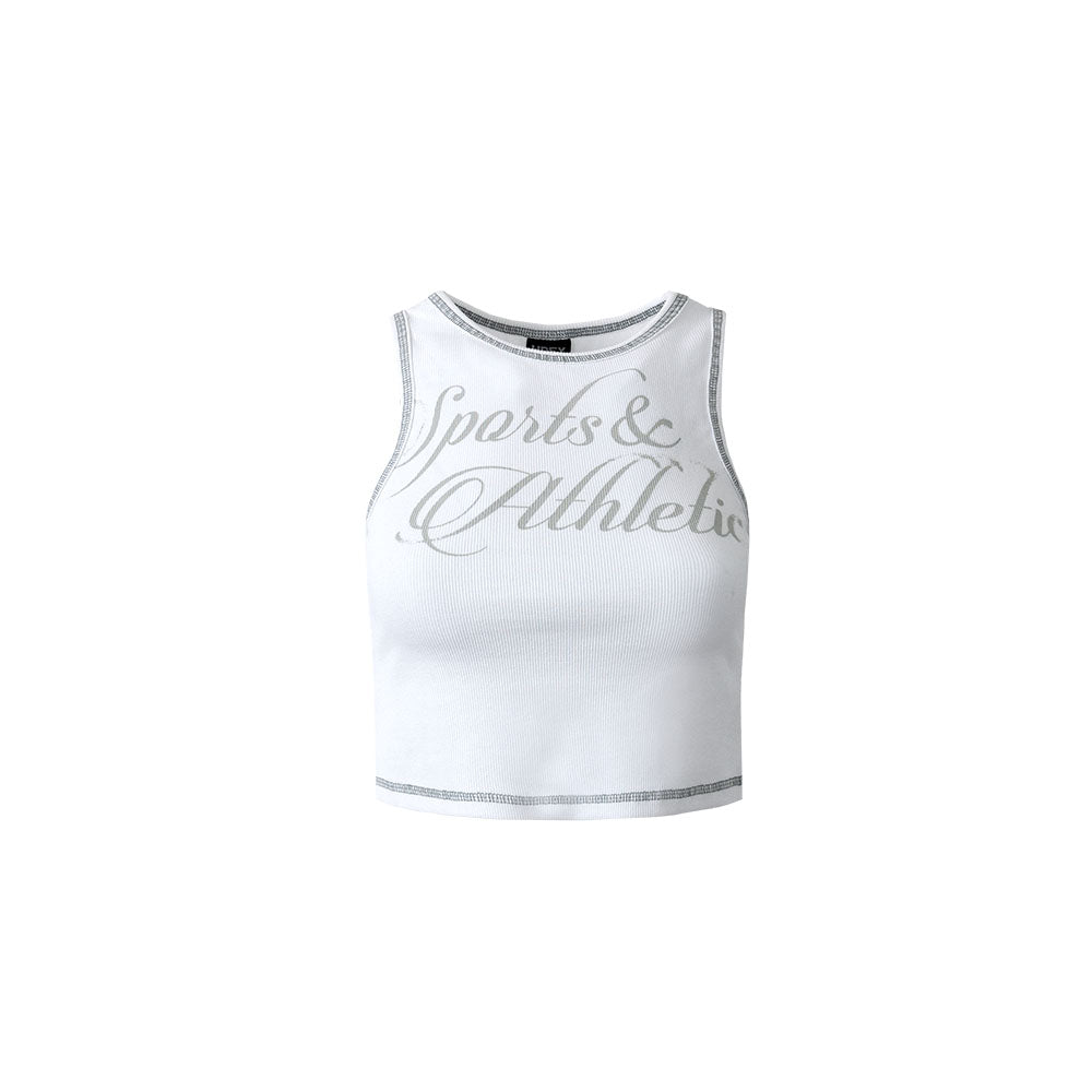 Color Stitch 字母縫線短版無袖上衣 黑色