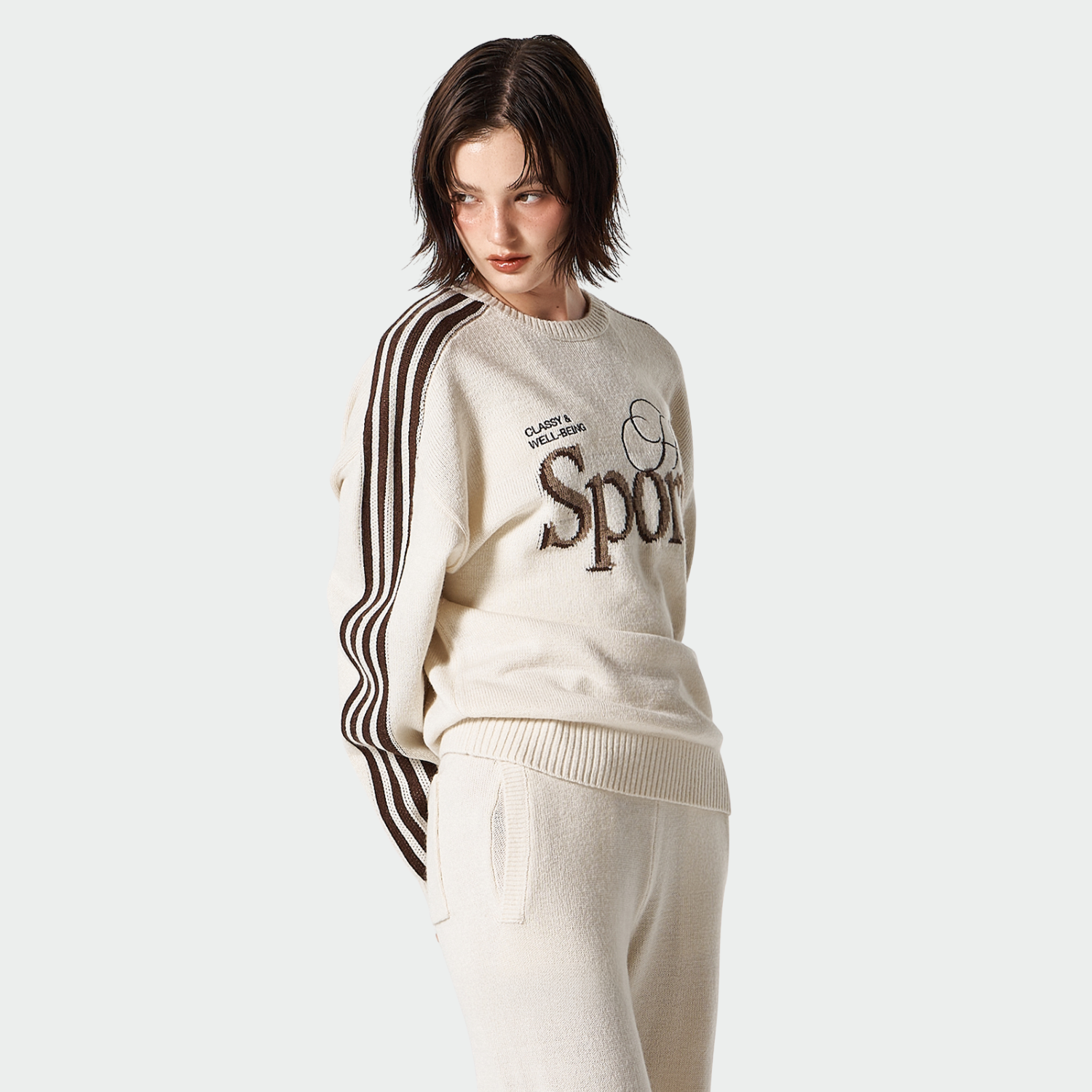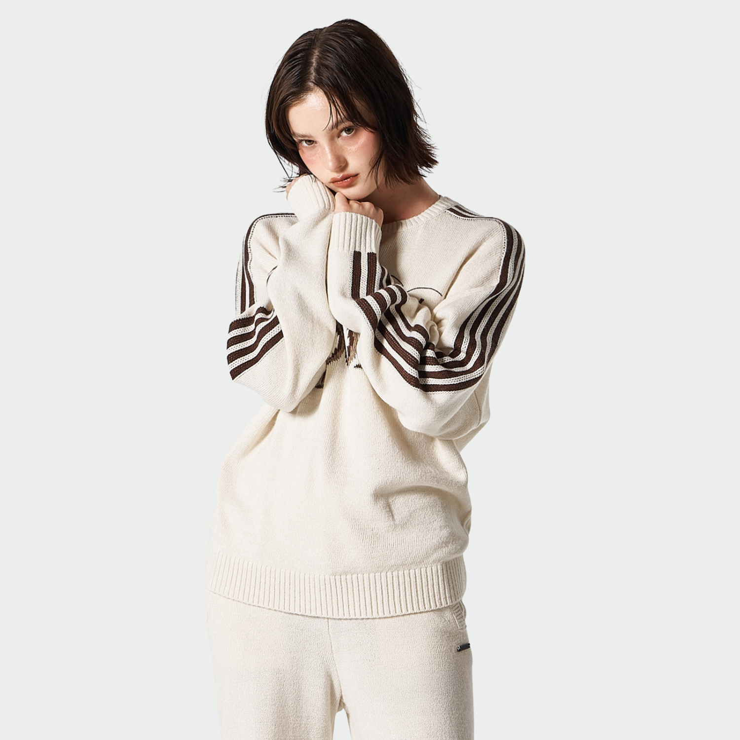 【早鳥優惠】Womens 滾邊休閒寬鬆混羊毛針織上衣 象牙白