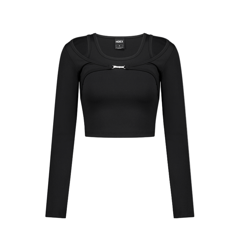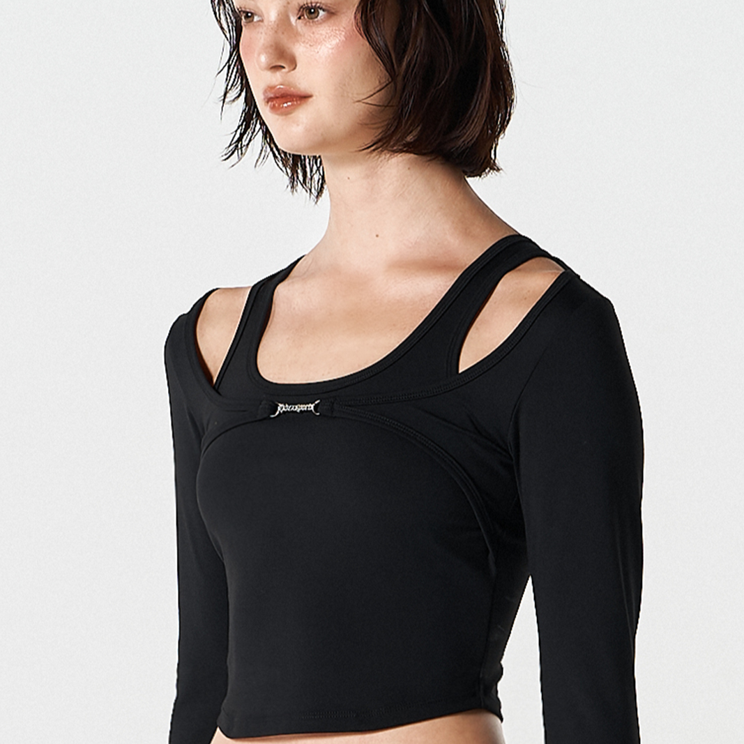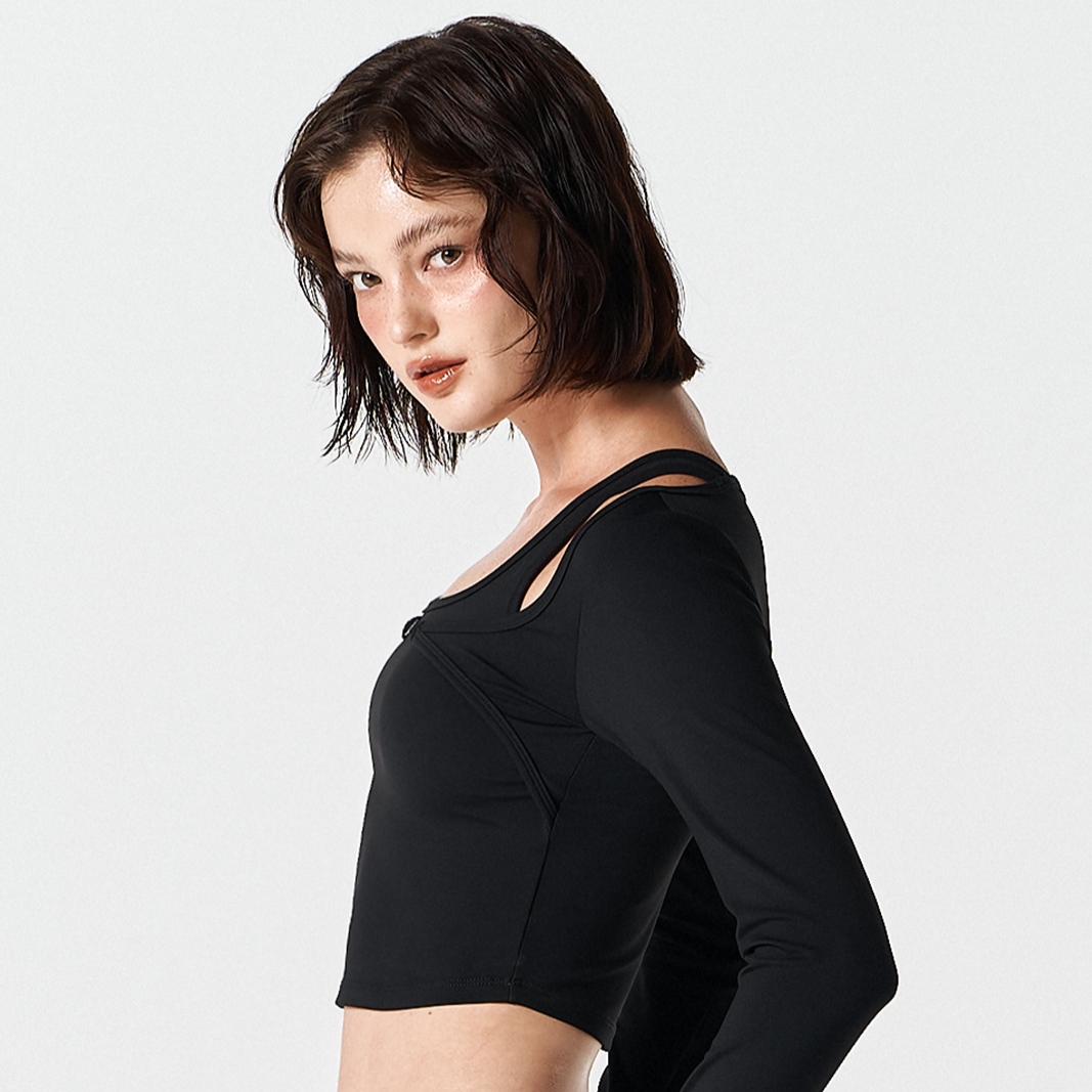 【早鳥優惠】Womens Supple 假兩件運動長袖上衣 黑色
