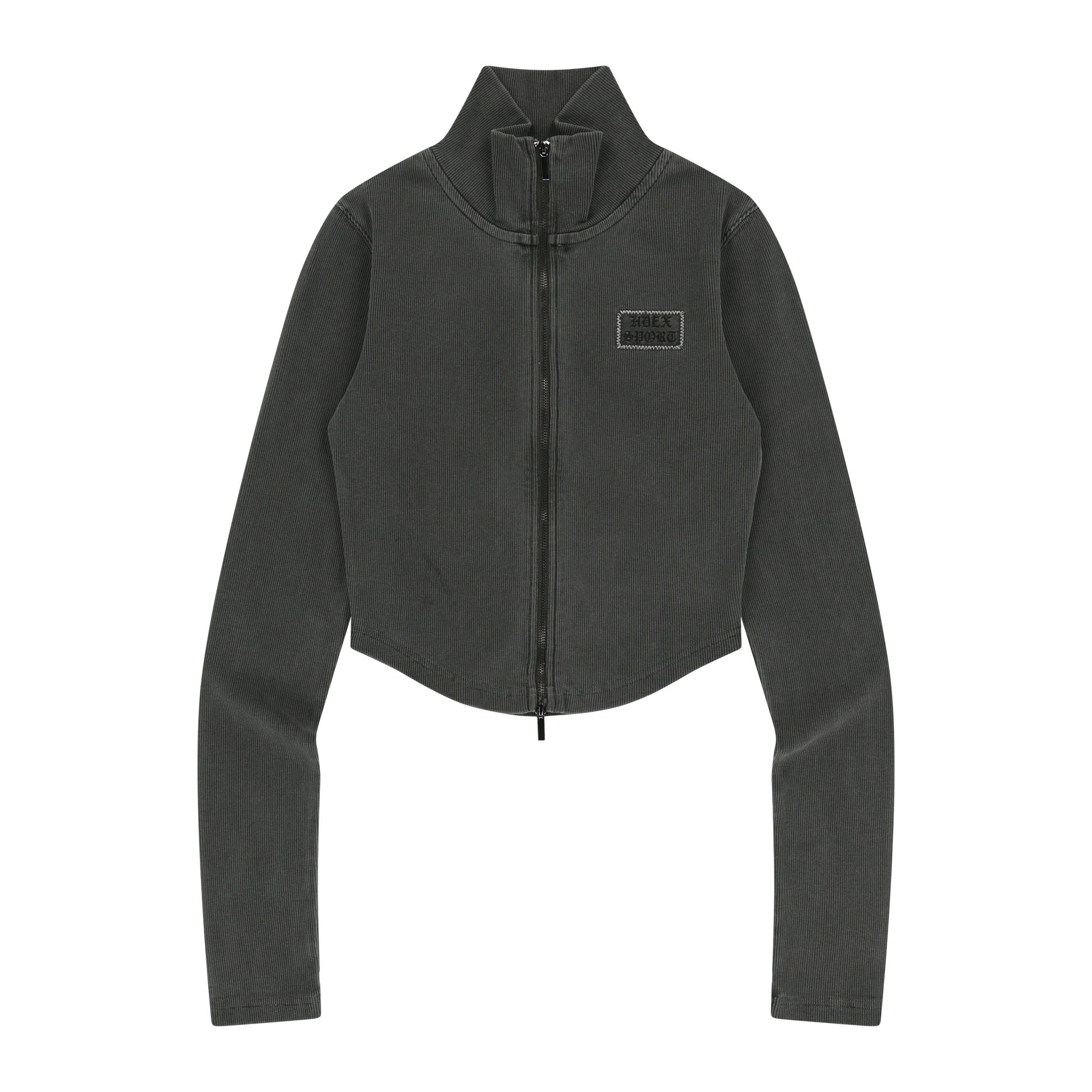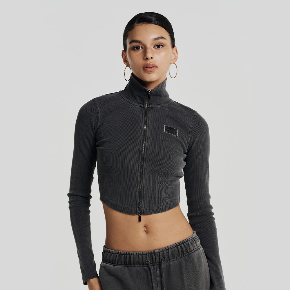 Pigment 經典剪裁短版高領拉鍊外套 碳黑色