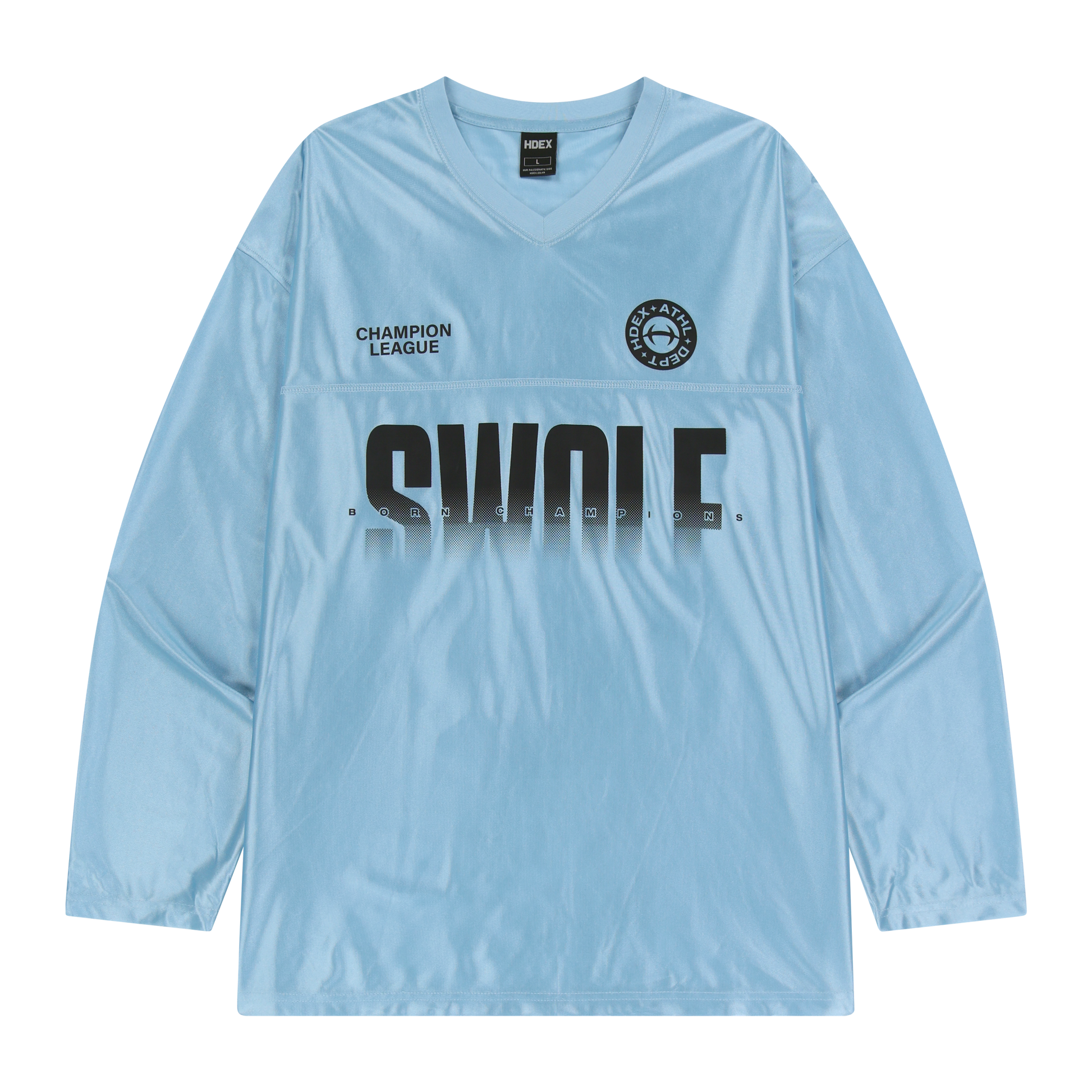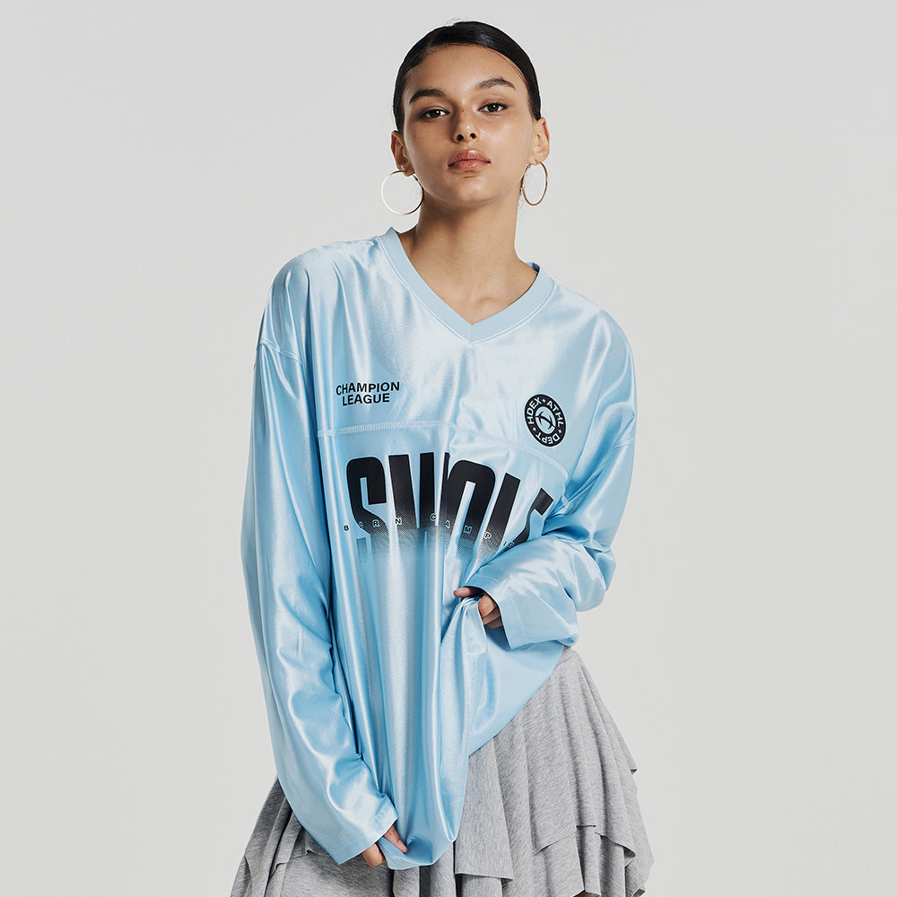 Round Symbol 緞面V領長版運動上衣 粉藍色