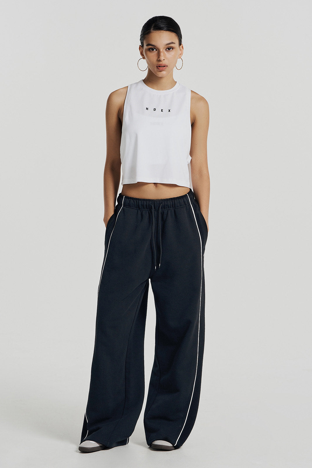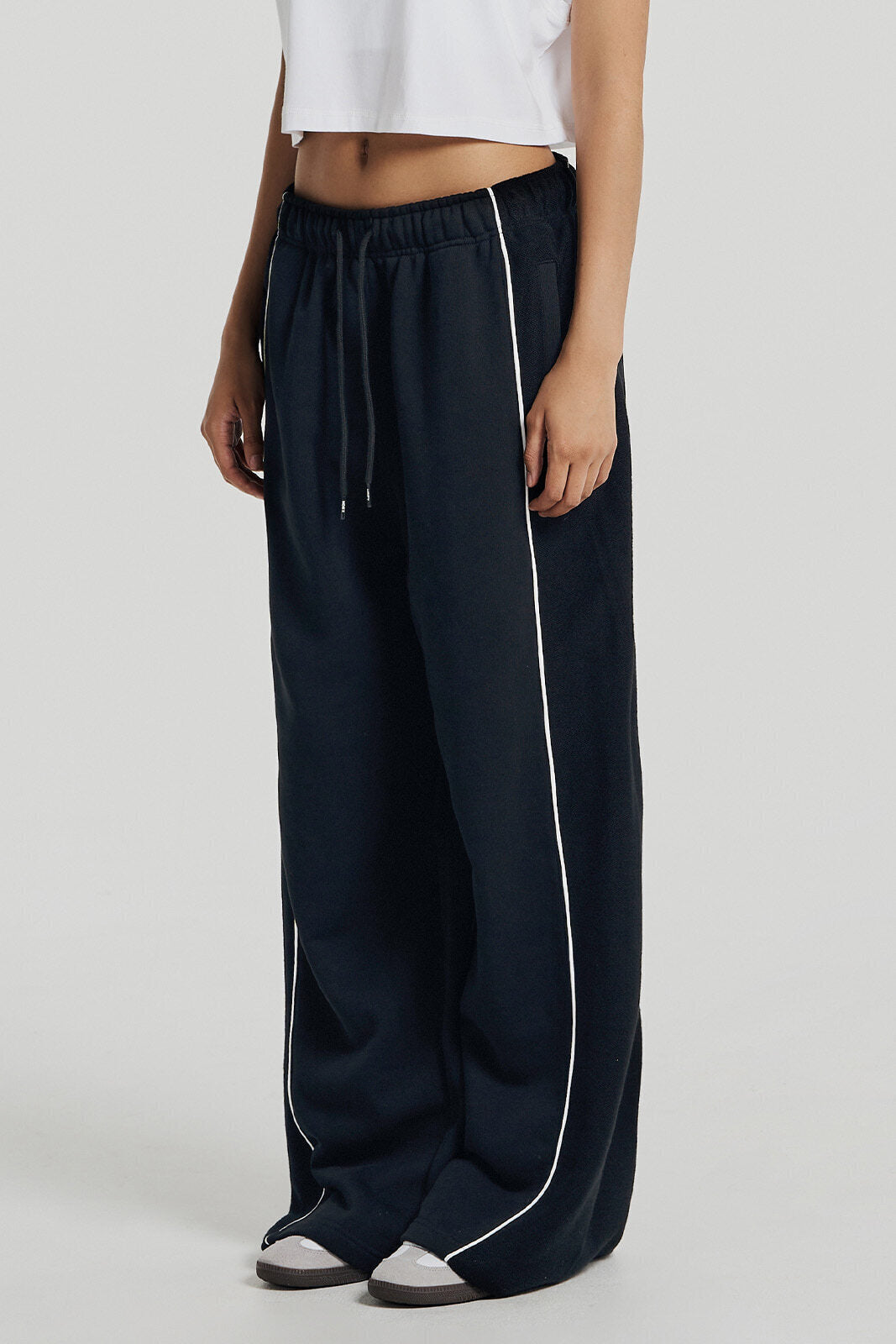 Wide Reverse 純棉滾邊運動寬褲 黑色