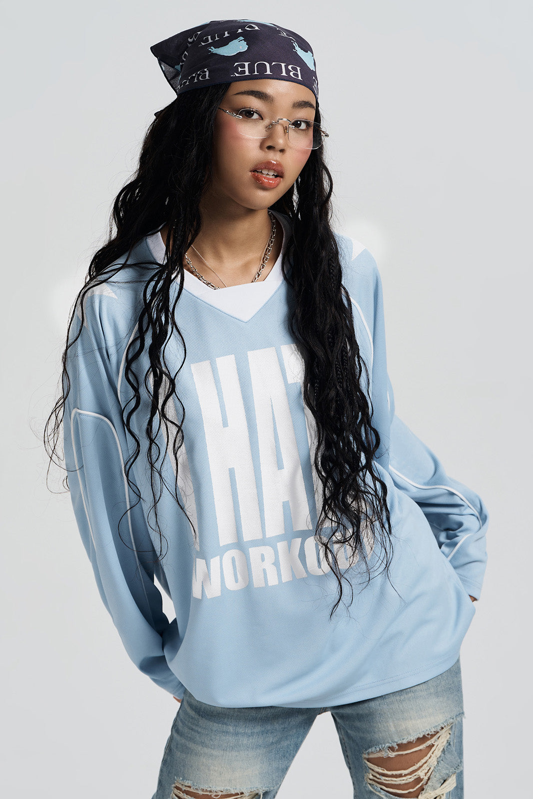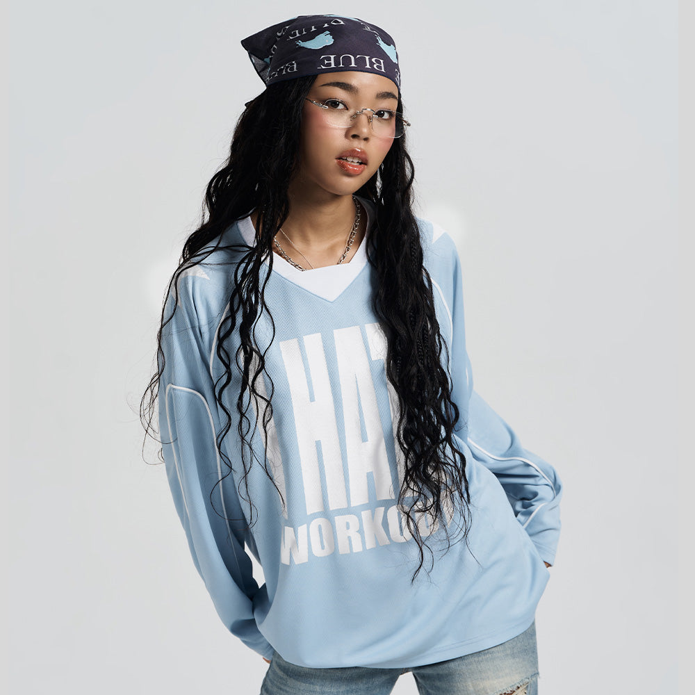 Work Out 透氣網眼長袖運動上衣 天空藍